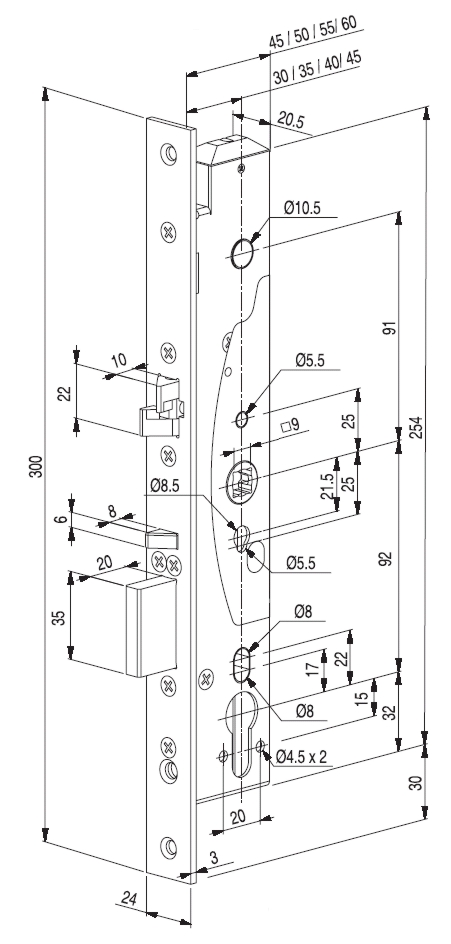 Panikový zámek EL060 - Při každém zavření dveří dojde k samouzamčení zámku. Zámek lze odemknout z vnitřní strany stisknutím panikové kliky, případně klíčem. Z venkovní strany je možné zámek odemknout jen pomocí klíče. Doporučujeme použití bezpečnostního kování IKON SX48 - klika-madlo. EL060 nepotřebuje žádný kabel ani elektrické napájení!