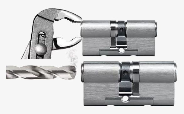 Chrom-vanadiové kolíky v jádře cylindrické vložky nabízejí spolu s ocelovým můstkem v europrofilu sériovou ochranu proti vytažení v souladu s normami.