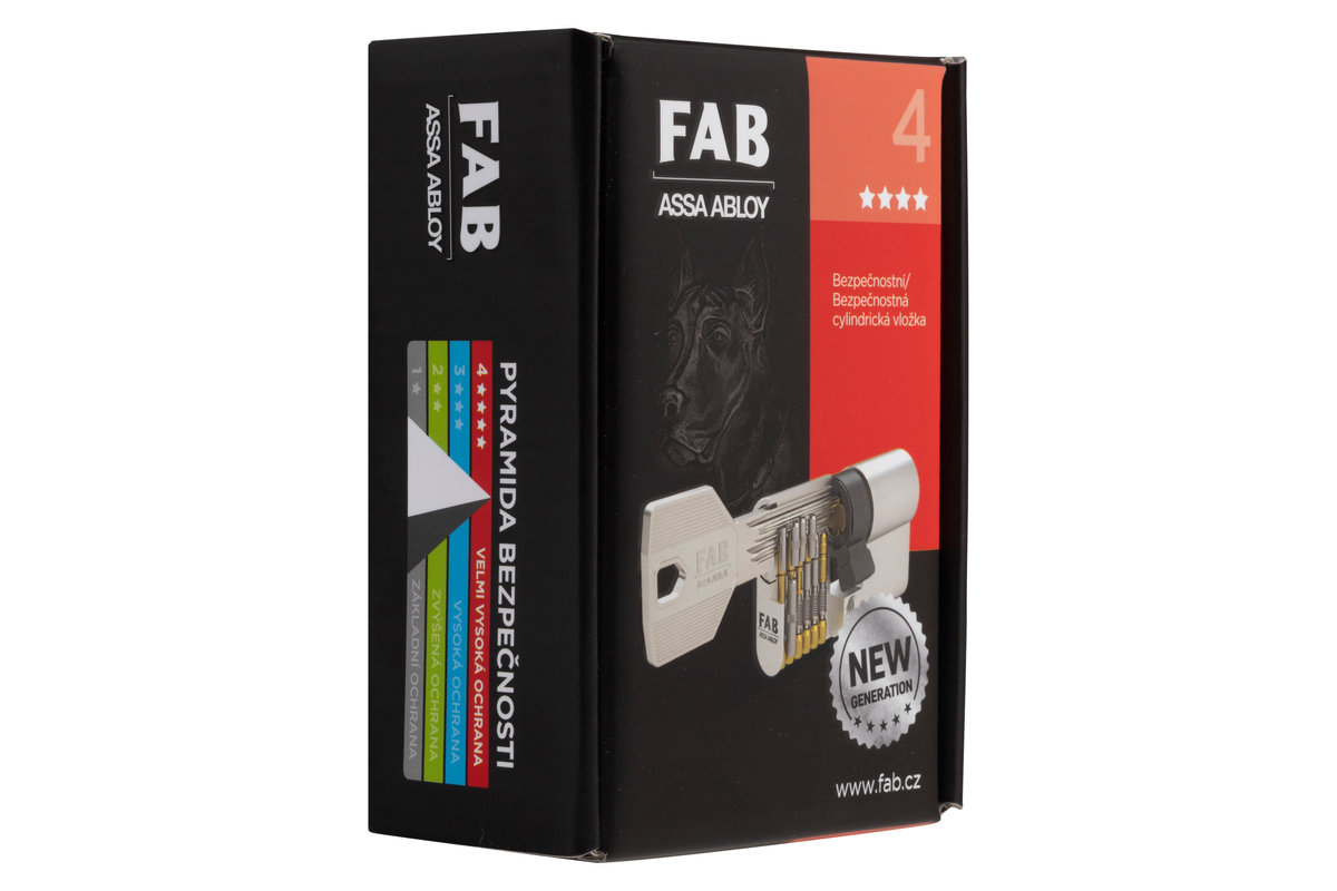 Cylindrická vložka FAB 4**** je vhodná do dveří, které vyžadují trvale velmi vysoké zabezpečení (dveře do bytu, dveře do domu, kanceláře, školy, průmyslové objekty atp.). Vložka je vždy ve verzi s Emergency funkcí, která umožňuje odemknout dveře, i když je z druhé strany zastrčený nebo pootočený klíč.