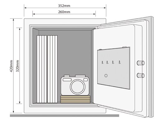• Sejf má vnitřní zásuvku a vyjímatelnou přihrádku.