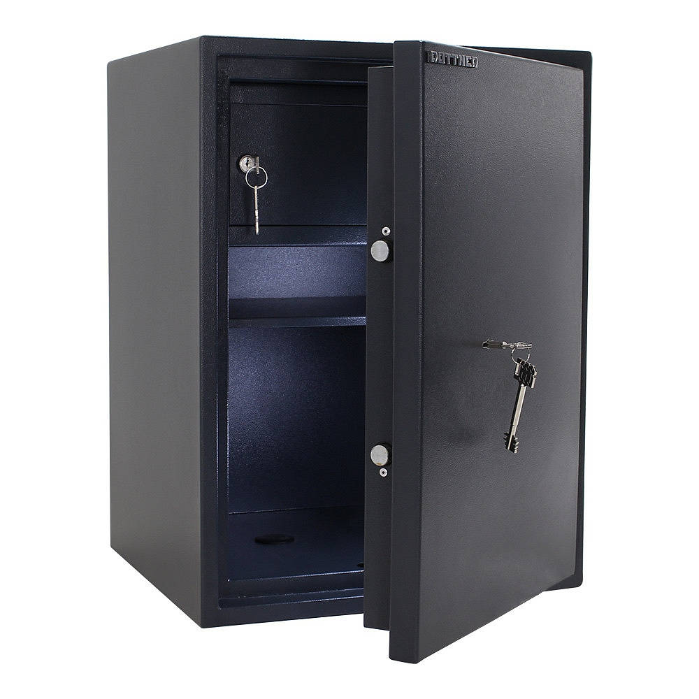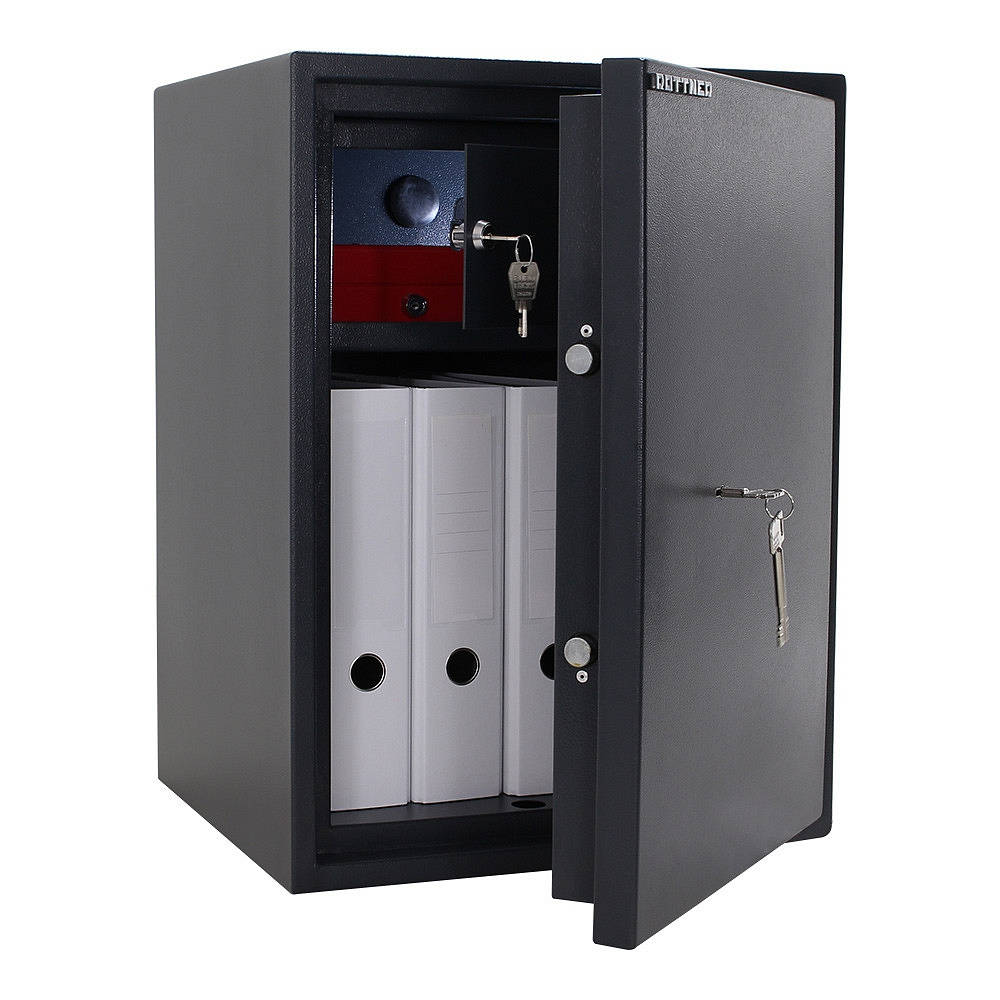 • Trezor je vybaven bezpečnostním motýlkovým zámkem třídy EN-Klasse 1 s pancířovou ochranou z manganové oceli (2x klíč).