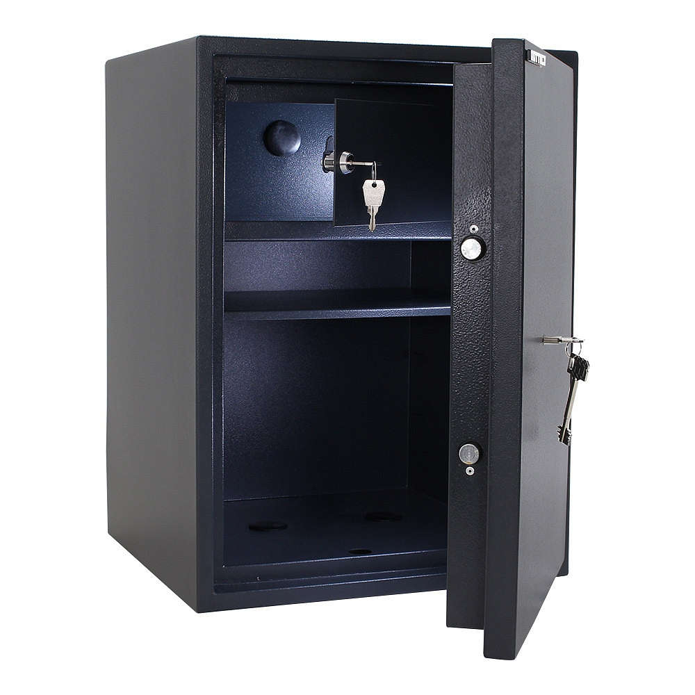 • Dvouplášťový nábytkový trezor s tloušťkou dveří 70 mm je odolný proti vloupání a menšímu ohni.