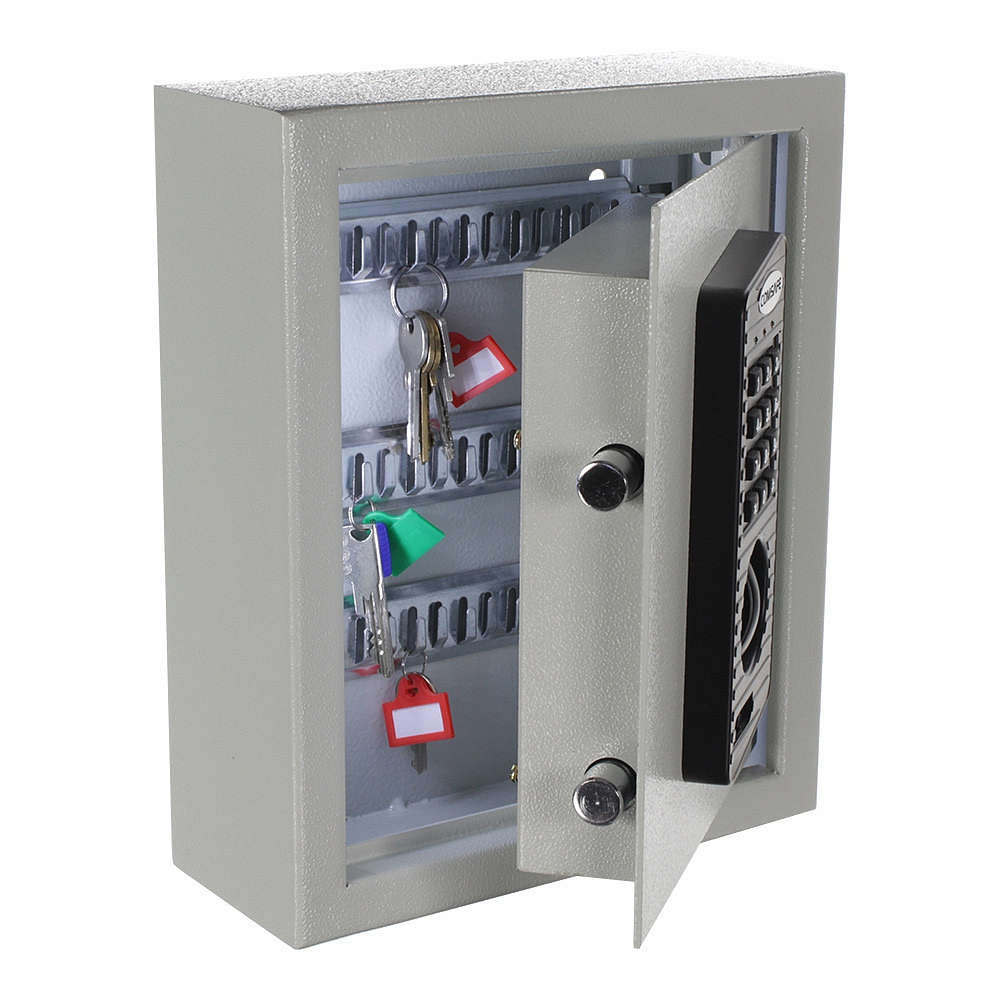 • Jednoplášťová schránka na klíče o šířce 2 mm s tloušťkou dveří 4 mm z kvalitní oceli a kotvením do zadní stěny (4x).