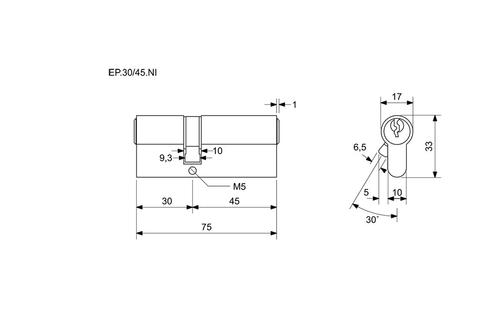 Cylindrická vložka FAB 1.00/DNm 30+45, 3 klíče
