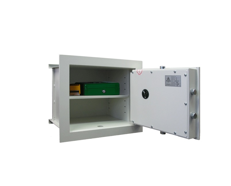 • Dvouplášťový stěnový trezor s ohnivzdorným lemem odolným proti slabému požáru (ohnivzdornost není certifikována).