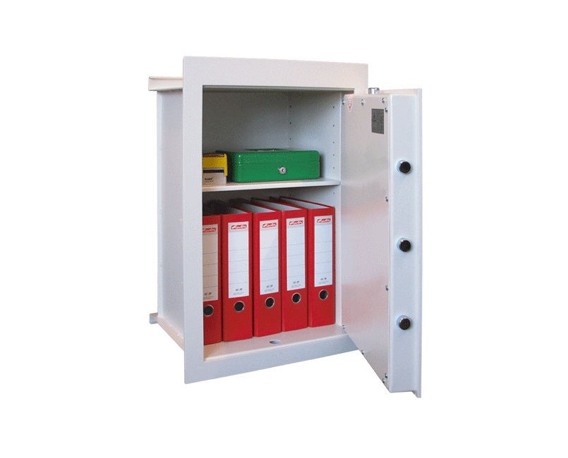 • Dvouplášťový stěnový trezor s ohnivzdorným lemem odolným proti slabému požáru (ohnivzdornost není certifikována).