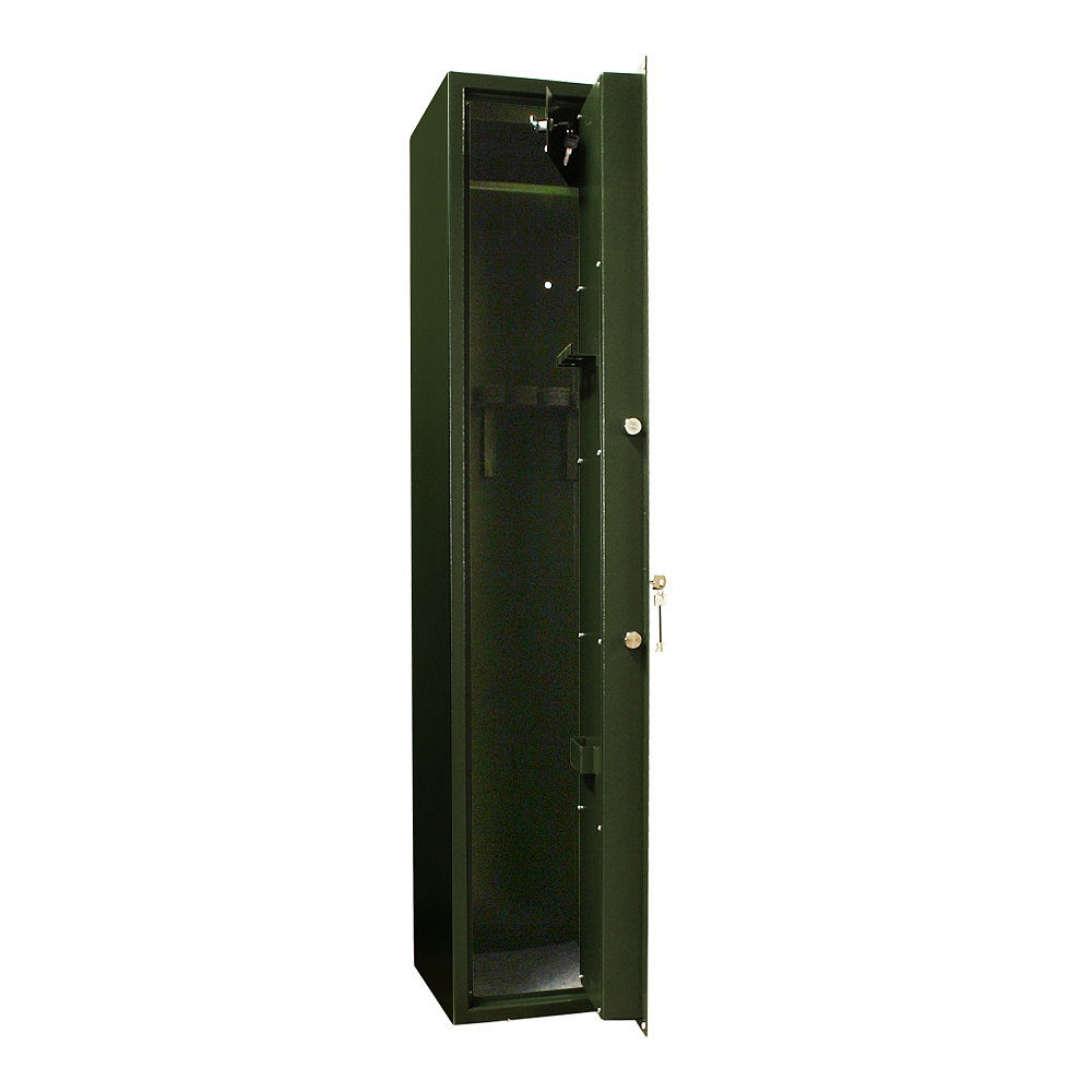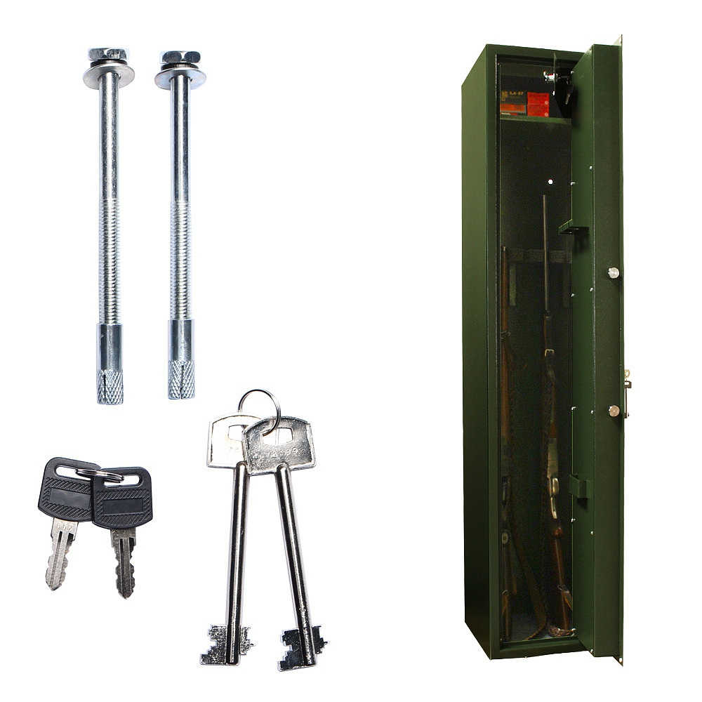 • Uvnitř se nachází 150 mm vysoká schránka o objemu 14 l na klíč a opěrka na 5 dlouhých (max. 1290 mm) zbraní.