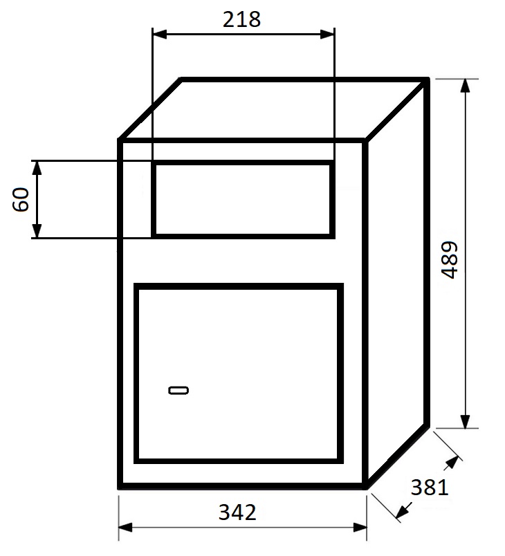 • Vhozový jednoplášťový trezor s tloušťkou korpusu (5 mm) a jednoplášťových dveří (5 mm).