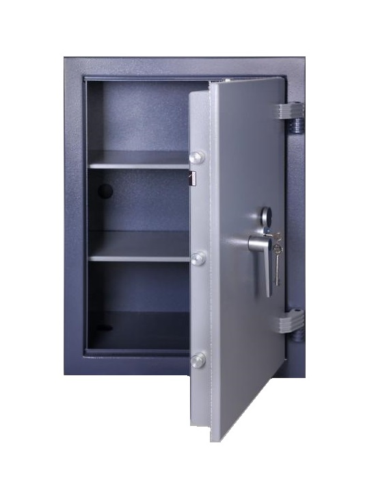 • Dvouplášťový skříňový trezor certifikovaný v I. bezpečnostní třídě s tloušťkou přední části dveří 8 mm (ocel).