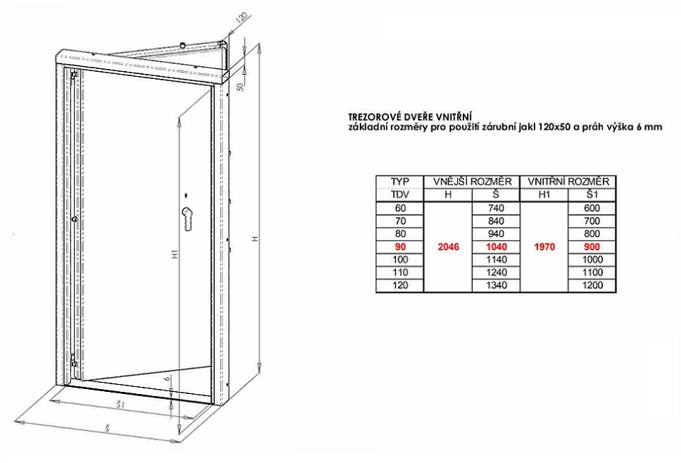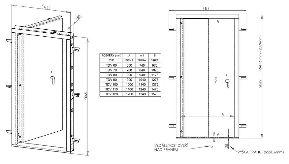 Trezorové dveře TDV 80 s otevíráním do chráněného prostoru na klíč