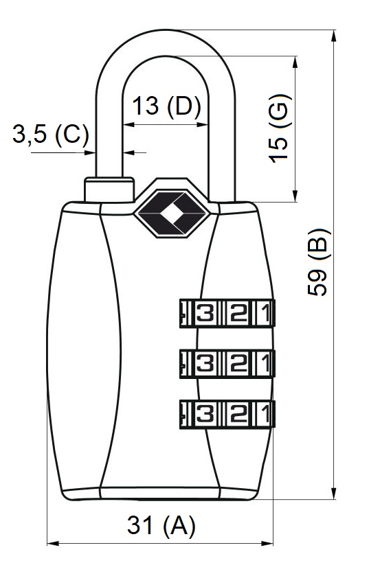 • Zámek je na číselný kód (1000 kombinací), který lze kdykoliv změnit s certifikací TSA.